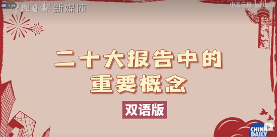 中国日报新媒体用中英双语呈现了二十大报告中的重要概念:中华民族伟大复兴、中国式现代化、守正创新、全过程人民民主、“打虎、拍蝇、猎狐”、总体国家安全观、全面依法治国、全面从严治党等关键词,用中英文双语形势展示给同学们。