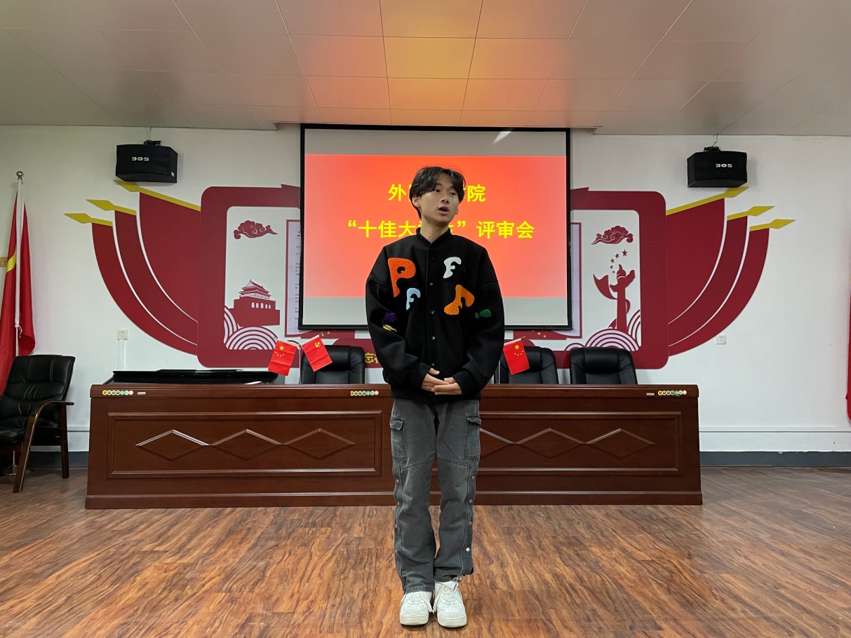 11月24日09:45,外国语学院“十佳大学生”评审会在香远楼315会议室举办,院党委书记罗其娟出席并讲话,学生科负责人、各年级辅导员担任评委,十位候选同学参加评选。思政科科长江山主持评选会。