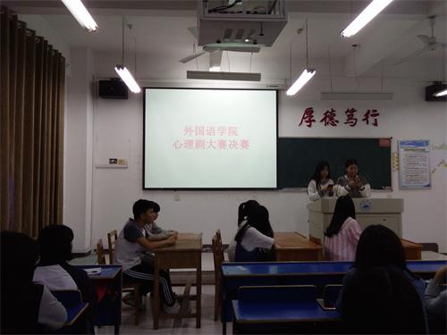 为加强校园文化建设,普及心理健康知识,5月7日至8日晚外国语学院于香远楼425举办了心理剧大赛决赛,决赛评委由学院团委学生会干部担任,大一年级各班学生代表观看了此次比赛。