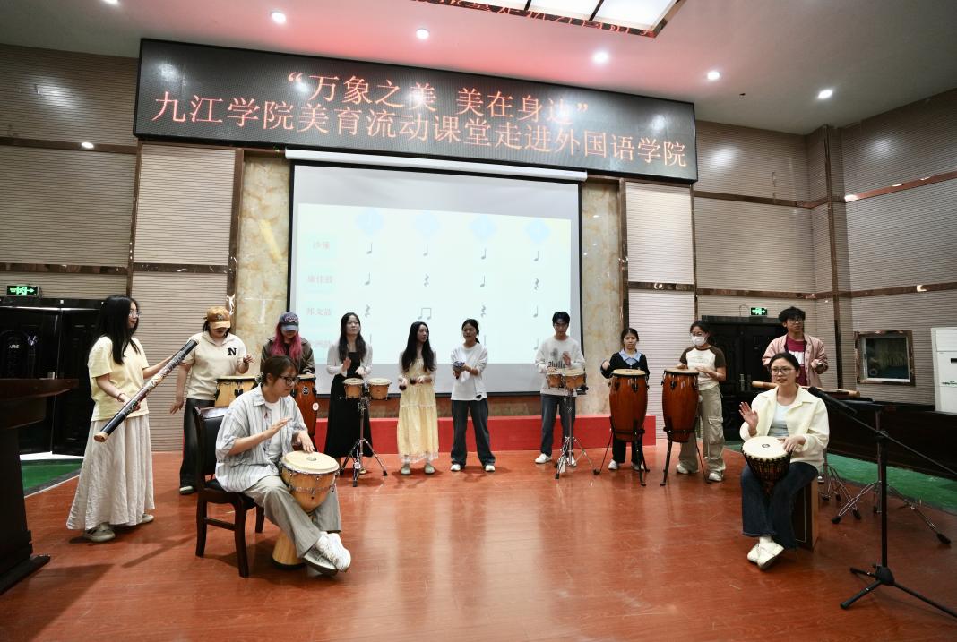 讲座通过节奏艺术与语言、数学等学科的跨界联动,打破传统课堂的边界,以创新的形式激发学生发现美、感知美、创造美的能力,生动诠释了“美在身边”的理念,为校园美育注入了新的活力。未来,“万象之美·美在身边”九江学院美育流动课堂将持续拓展,深入更多二级学院,以艺术之光点亮学子心灵,让教育因美而更加丰盈,为学生的全面发展提供更广阔的精神滋养。