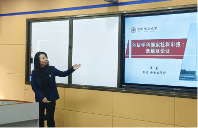 11月13日上午,江西师范大学社会科学处处长、江西省外语学会副会长黄慧教授应邀来到我院,为教师们带来题为“外语学科国家社科申报:选题及论证”的专题讲座。讲座在香远楼417举行,吸引了众多教师及科研骨干踊跃参加。