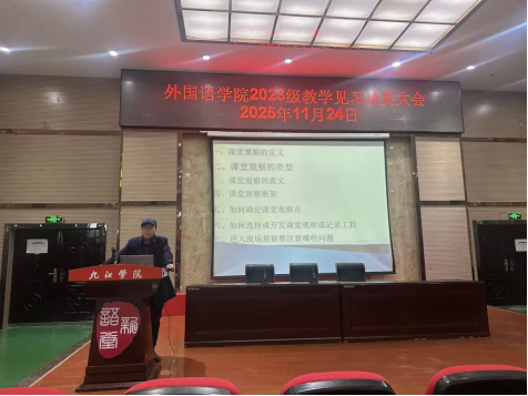 九江市第十一中学对见习活动给予高度支持,外国语学院张秀峰主任在总结中感谢校方提供的实践平台,并鼓励同学们将所见所感转化为学习动力。贺林茂教授进一步点评:“课堂教学的本质是‘以生为本’,了解学情、灵活设计环节是成为优秀教师的关键。希望同学们将这次见习的收获内化于心,外化于行。”