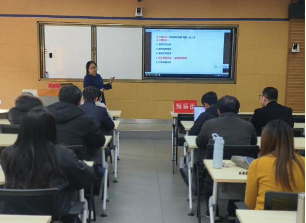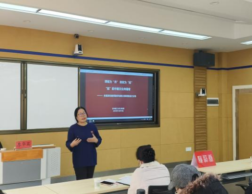 12月19日下午,东华理工大学外国语学院院长廖华英教授应邀来我院新语堂,为老师们带来题为“课程为‘舟’,思政为‘舵’,‘赋’能中国文化传播者——全国高校教师教学创新大赛课程设计分享”的精彩讲座。本次讲座吸引了众多教师聆听学习。